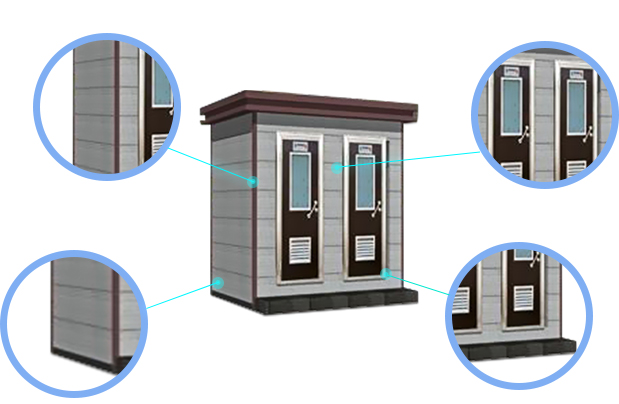 節(jié)能環(huán)保說(shuō)明 產(chǎn)品選材方面:廁所墻體所用的金屬雕花板、鋁塑板、彩鋼復(fù)合板、防腐木,均為環(huán)保無(wú)公害產(chǎn)品,具有美觀、隔音、保溫、隔熱、阻燃、重量輕、易安裝等優(yōu)點(diǎn)。